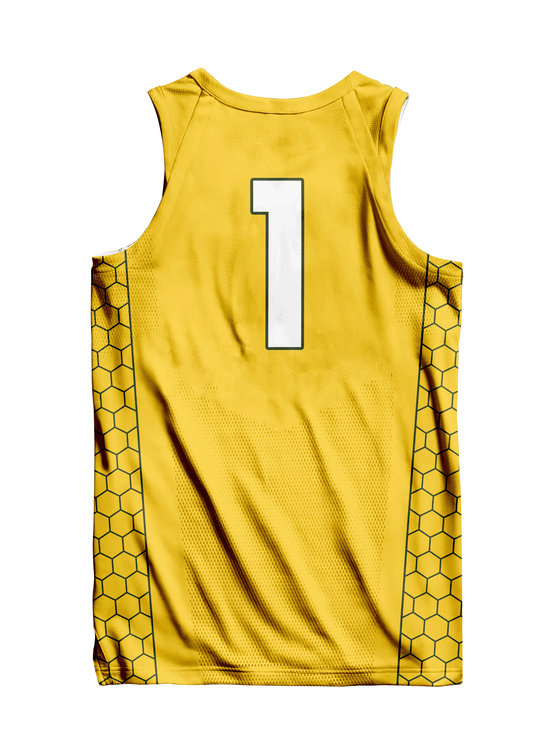 Yellow basketball jersey with honeycomb side panels for a sharp, unique court style.