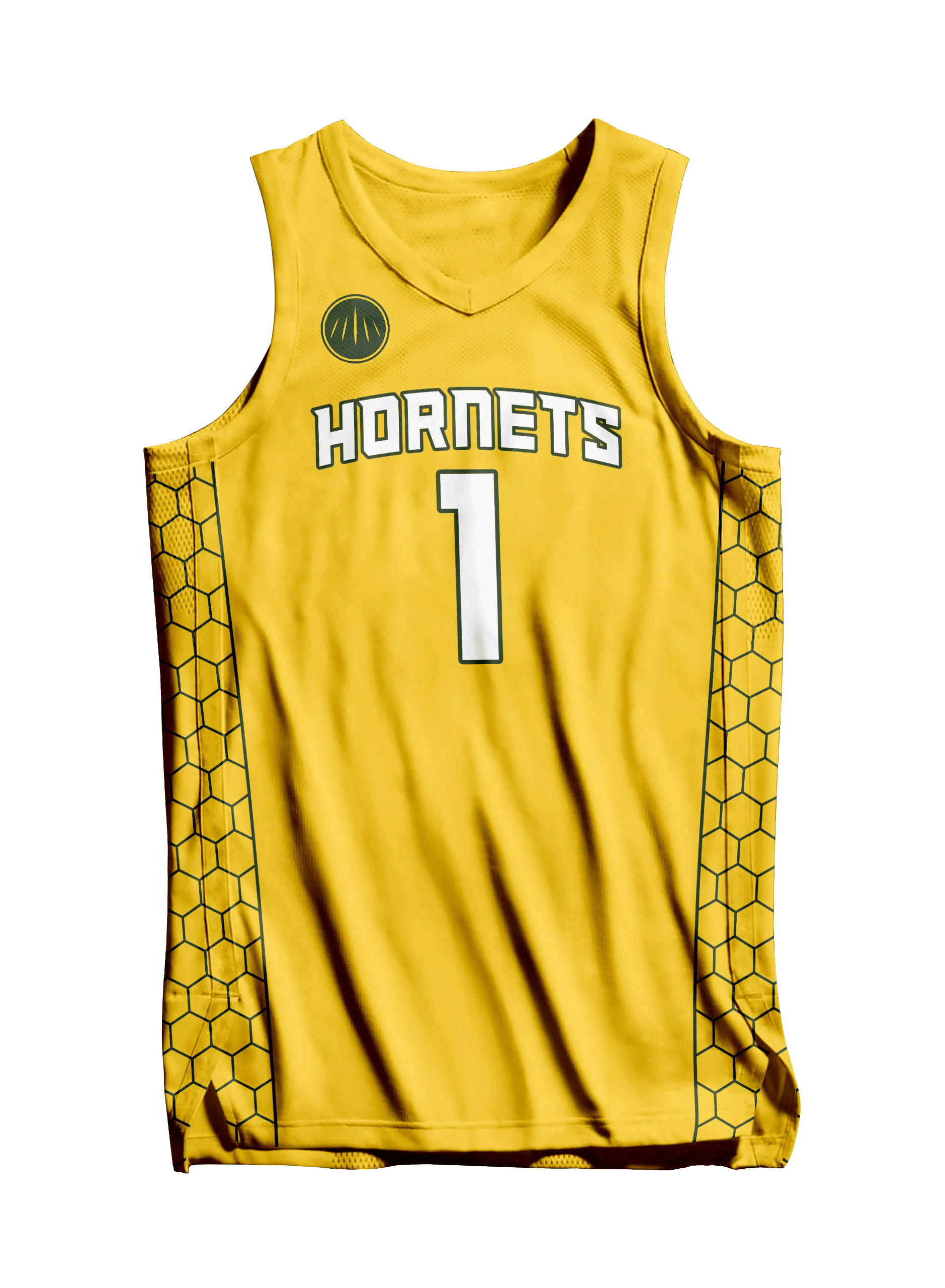 Hornets basketball jersey, yellow honeycomb sports uniform, custom basketball kit, breathable athletic jersey, performance sportswear.
